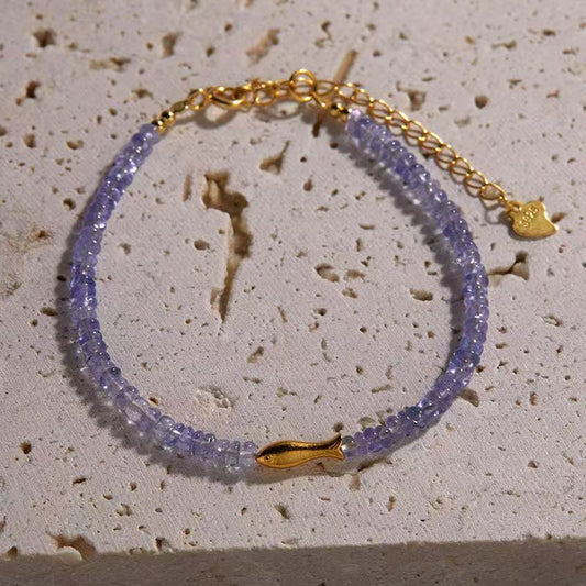 Natural Tanzanite Beaded with Delicate Oval Fish Bracelet