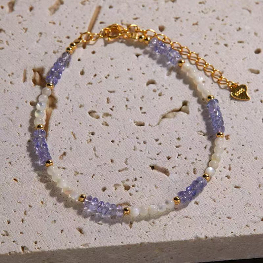 Natural Tanzanite & Mother of Pearl beaded Bracelet
