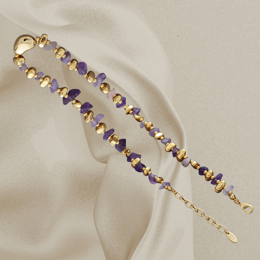 Medieval Style Amethyst Beads Mixed with Irregular Copper Stacked Necklace