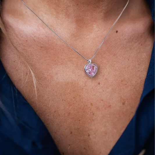 Heart-Shaped Pink Zirconia Pendant(No Chain)