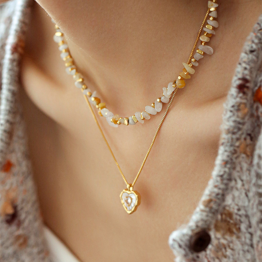 - Material: Gold-plated Brass, Natural Stone, Glass Rice Beads
