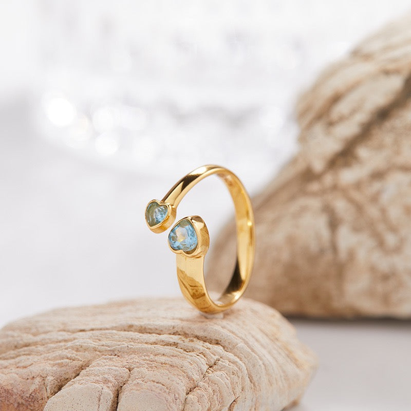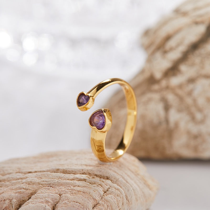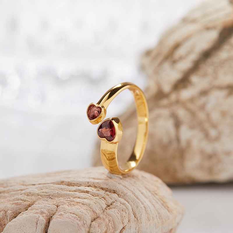 The rings are crafted from gold and silver-toned metals. Each ring features a heart-shaped gemstone.