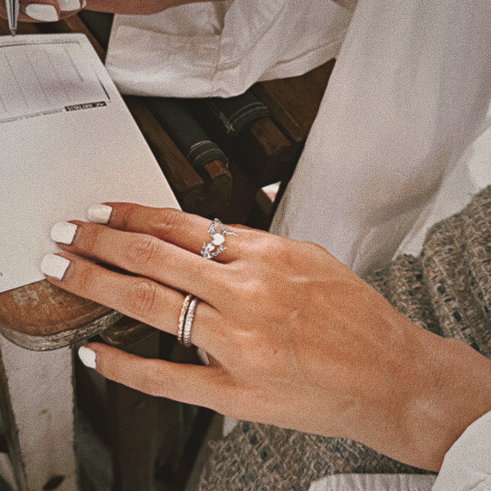 Inspired by the natural world, particularly the fluidity of molten rock or the organic forms found in nature. The irregular setting could be a nod to the unpredictability and beauty of natural processes, such as the cooling and solidifying of lava.